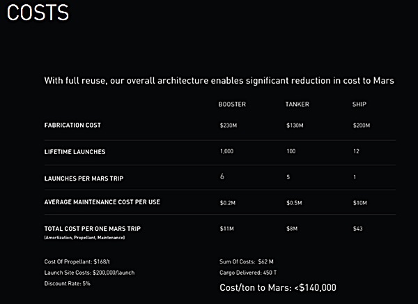 Even a precis of the BFR is rather epic. 150 tons to low earth orbit. Fully reusable. Three times the payload of the previous biggest fucking rocket - the Saturn V, yet only a fraction of the cost per launch. Mars missions, lunar bases, point to point ballistic transport on Earth... and all by itself, the second stage is a low payload single stage to orbit craft. (Albeit with low payload compared to the full BFR stack.)