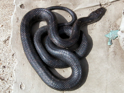 From what I could see it was black all down its length, roughly 30", and probably no thicker than half my wrist. And that's about all I got from the encounter. Oh, and that it was frigging fast. Made no effort to warn or fight; went straight into escape mode, and apparently safety to this snake means getting in the water.