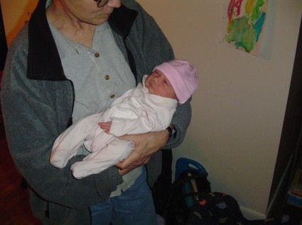 Last Friday, the Buckethead clan welcomed its newest member, Jocelyn. After a mercifully short labor, Jocelyn Anne regarded the world with suspicion, and immediately commenced to crying. Resigning herself to her fate, she abandoned that approach and began eating. In stark contrast to my son John who slept through the entirety of his first five days on Earth, Jocelyn has been occasionally awake, and feeding most of that time - so much so that she has already gained several ounces of weight. This may not seem like much, and in fact it isn't. I could do the same in a matter of minutes with the aid of moderately large pizza. But when you gain a twelfth of your body weight in a week, that's a rather impressive enbiggenment. The equivalent for me would be on the order of twenty pounds.