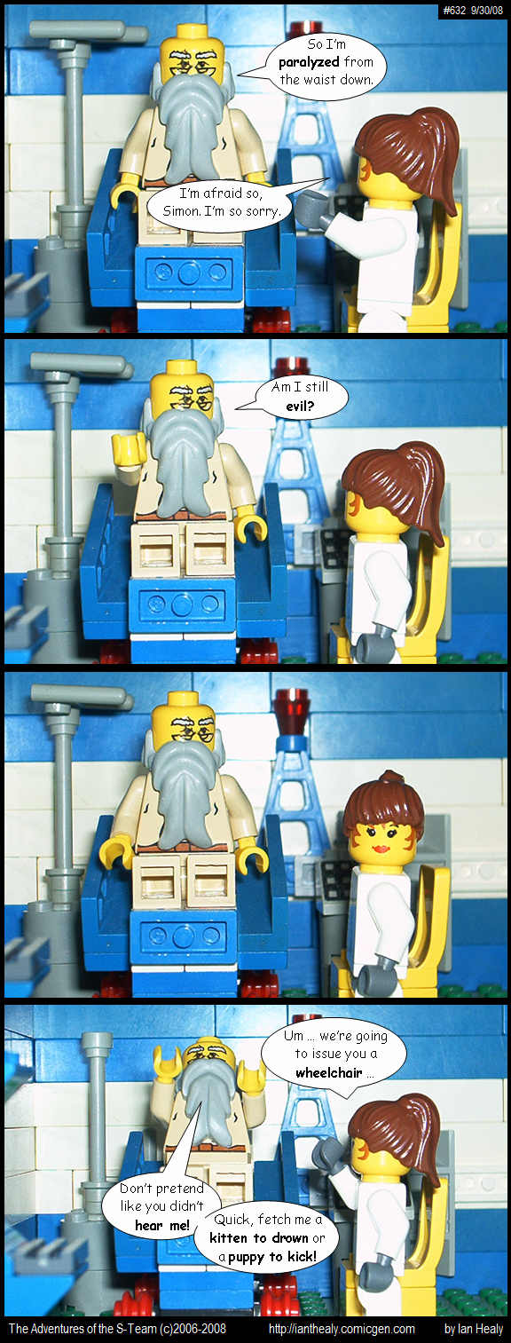The fact is, I just haven't been all that evil recently, and certainly not discriminating. What I have been doing is writing up a storm. In the last 18+ months I have, in no particular order, completed three novels, landed an agent, had said agent retire only days before I was going to fire her anyway, and in turn landed a remarkable pair of agents who are doing their damndest to sell my stuff. I've also refurbished my author website - twice - and relocated my webcomic so everything is now in one easy-to-find package on www.ianthealy.com. It's hands-down the best place to keep track of what I'm doing and to watch the cavalcade of guest stars as they parade through every Saturday (you fellow Ministers are encouraged to submit something should you wish to do so).