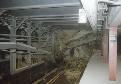 When I lived in New York, I used to travel from Queens to Jersey City every Sunday to play music with my friends Darrell and Bruce. It was the best part of my week. When I made it to the World Trade Center subway station, I always felt a little better because fun was just a PATH ride away. The WTC station was nifty too-- the underground mall, the half-attractive artsy inlays, the rumble of the downtown A going by. The Commuter Bar, entirely decorated in beige naugahyde and aged winos. Loved it, loved it.